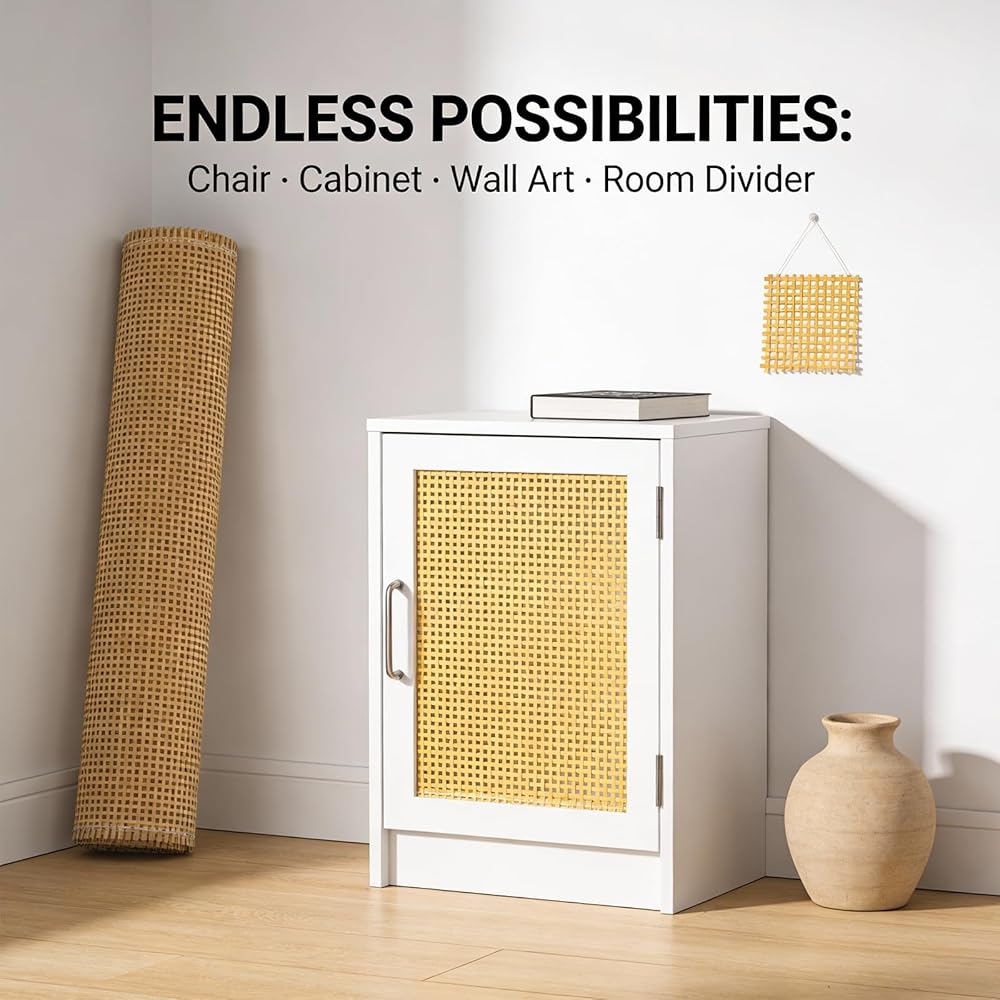 【Wide Range of Uses & Creative Possibilities】 From chair caning and cabinet door panels to basket weaving and wicker repair, this versatile material supports countless projects. Use it for indoor or outdoor furniture, wall decor, ceiling accents, and even craft supplies. Let your creativity flow and transform tables, storage units, or decorative screens with ease.