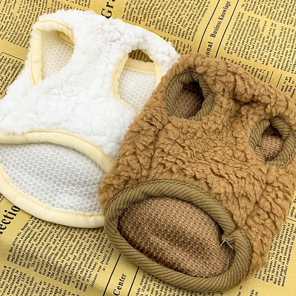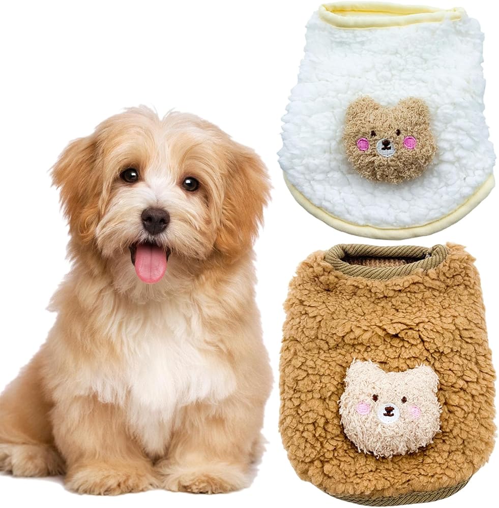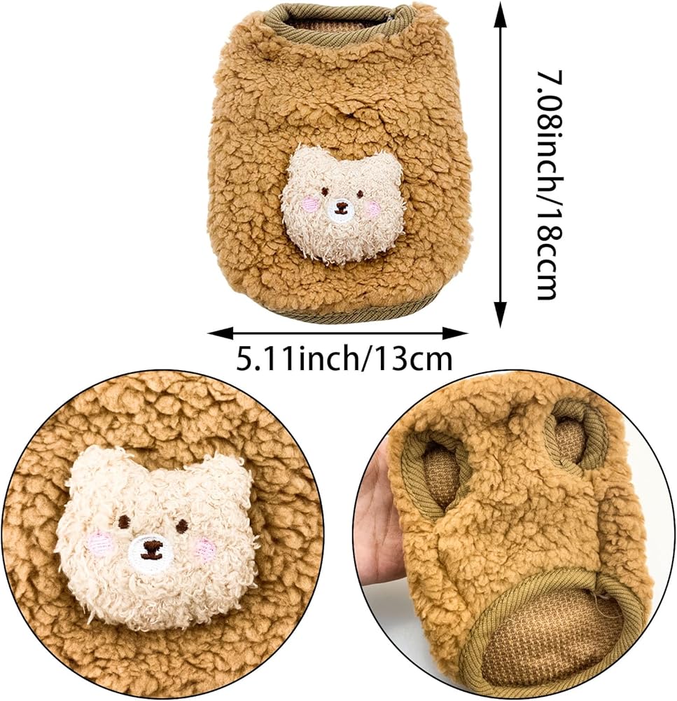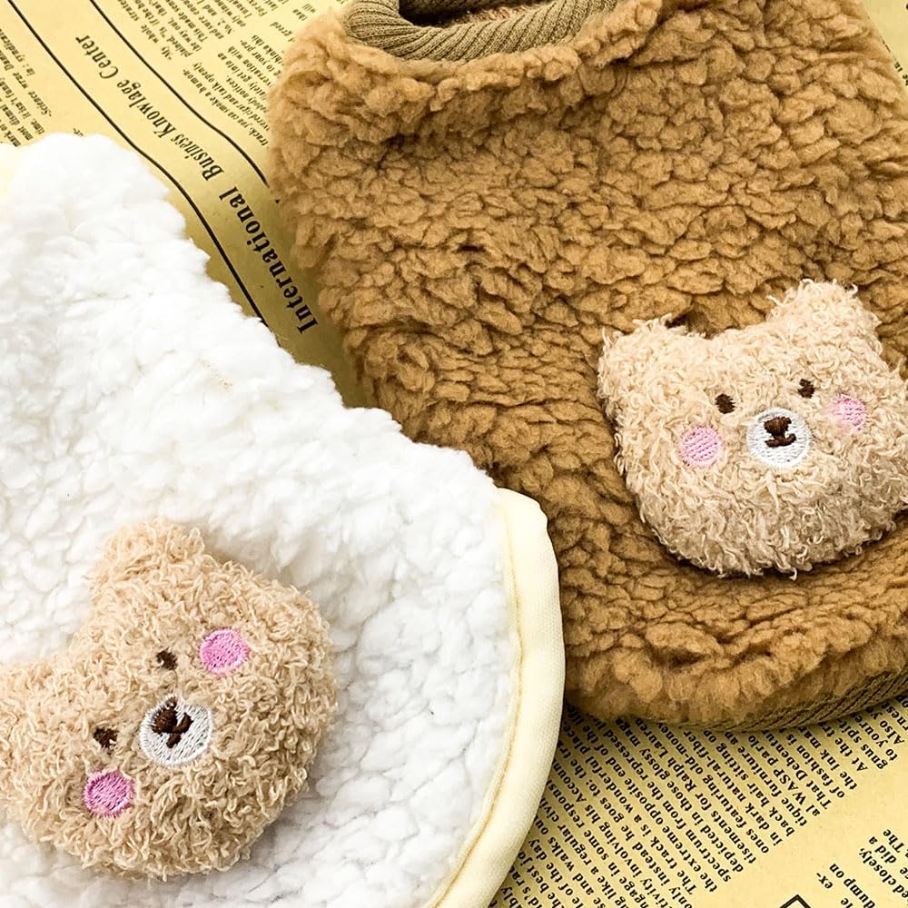 2PCS Teacup Dog and Cat Clothing Set for Chihuahuas and Yorkies, Colorful Bear Pattern Warm Fleece Jumper for Newborn Mini Dogs and Cats, Winter Pet Apparel. (XX-Small, White and Brown)