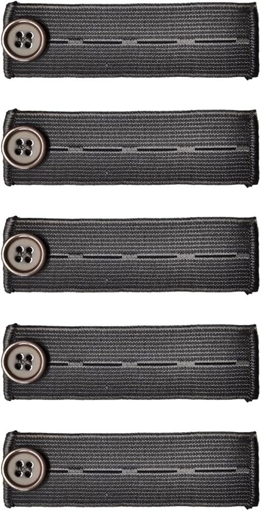 Solve tight waist troubles and maximize the wearability of your favorite pants with these 2 PCS Black Elastic Pants Waist Extenders! Designed for men, women, kids, and expectant mothers, these sleek black adjustable button extenders act as instant waistband expanders, adding 0.5-2.5inches of extra room to jeans, dress pants, casual trousers, kids' overalls, maternity pants, and even skirts with button closures. Whether yo're an expectant mom needing flexible room for a growing belly, a parent adjusting kids' overalls that fit snugly, dealing with post-meal comfort, temporary weight gain, or simply reviving pants that no longer fit perfectly, these black elastic waist extenders offer a practical, affordable solution without needing tailoring. Made with soft, durable elastic and sturdy metal buttons, their black hue blends seamlessly with dark-colored clothing—no one will notice you're wearing them. The adjustable design ensures a secure fit for different waist sizes (from kids' small waists to adults' varying needs), while the easy-to-use button mechanism lets you attach or remove them in seconds. Perfect for daily wear (jeans, work pants), kids' playtime (overalls, casual pants), maternity comfort, travel (avoiding tightness from sitting), and post-holiday weight fluctuations, this 2-pack gives you enough extenders to keep in your most-worn pants, kids' wardrobe, or stow in a bag for on-the-go use. Say goodbye to uncomfortable waistbands and hello to versatile, comfortable fit with these must-have black waist expander buttons