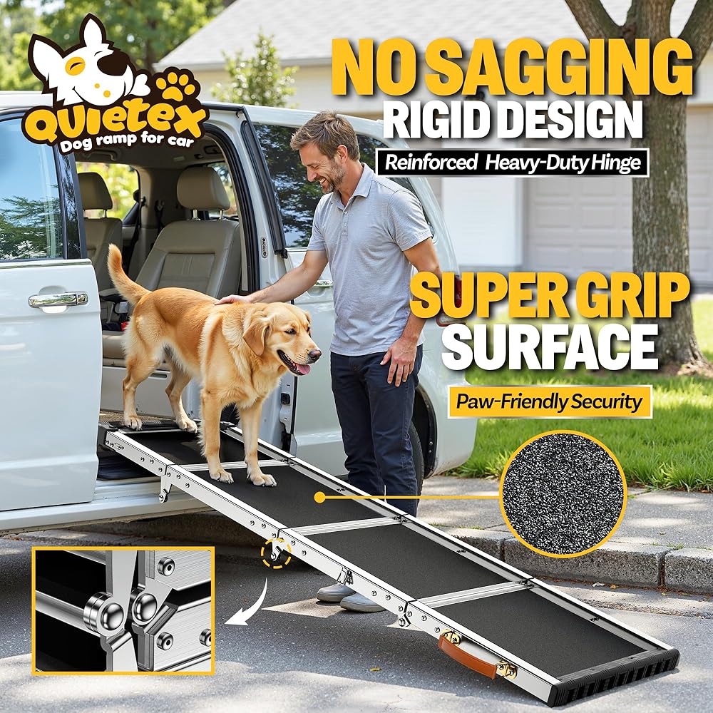 【YOUR FURRY FRIEND'S SAFETY IS OUR TOP PRIORITY】We never cut corners to make this ramp lightweight. That substantial feel is no accident—it's intentional. After rigorous testing, we found this is the minimum weight for maximum safety. Yes, it has more heft than some options, but every extra ounce ensures your pup stays safe and steady on every journey