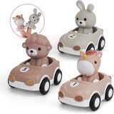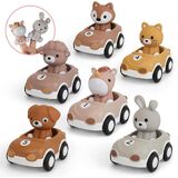 Nueplay Toy Cars for Toddlers 1-3, 6-Pack Friction Powered Push and Go Vehicle Set with Animal Finger Puppets for Boys Girls