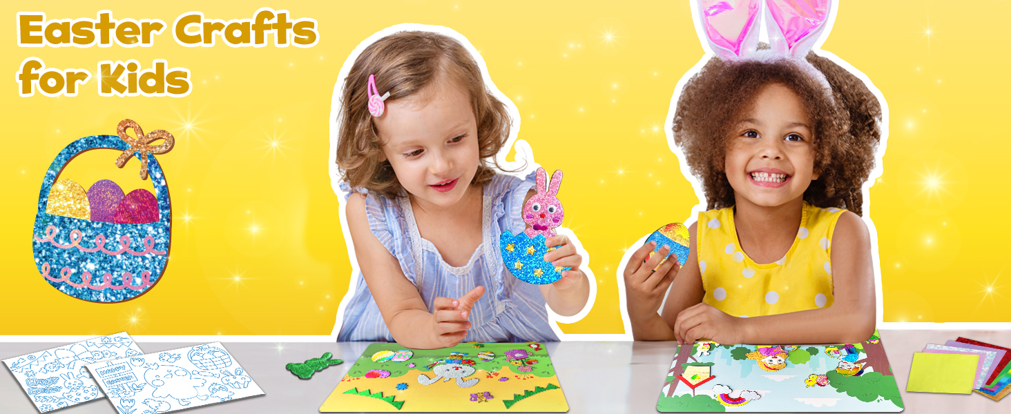 Playing So Easy: Kids can play independently or share the Easter crafts with family or friends. Kids just need to use foam stickers to apply shiny foil on the scene and create beautiful artwork effortlessly. Children can enjoy hours of fun in this easy Easter crafts, and you can have a break or play together