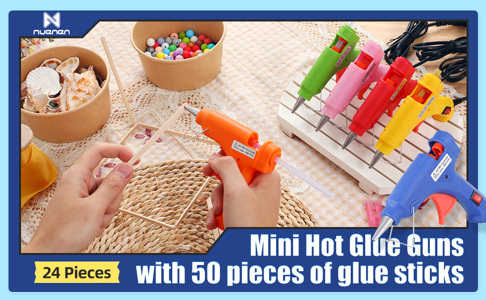Nuenen 24 Pieces Glue Guns Bulk Mini Hot Melt Gun with Glue Sticks Kit for Art Crafts DIY Home School Project Christmas Decoration Quick Repairs(Assorted Color)