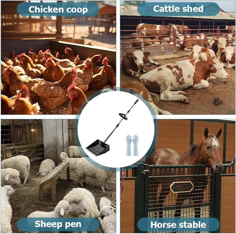 【Versatile Multi-Species Use】Perfect for chicken coops, cat litter trays, dog kennels, stables, and cattle pens. Includes waterproof gloves for hygienic waste handling—protecting hands from during cleanup.