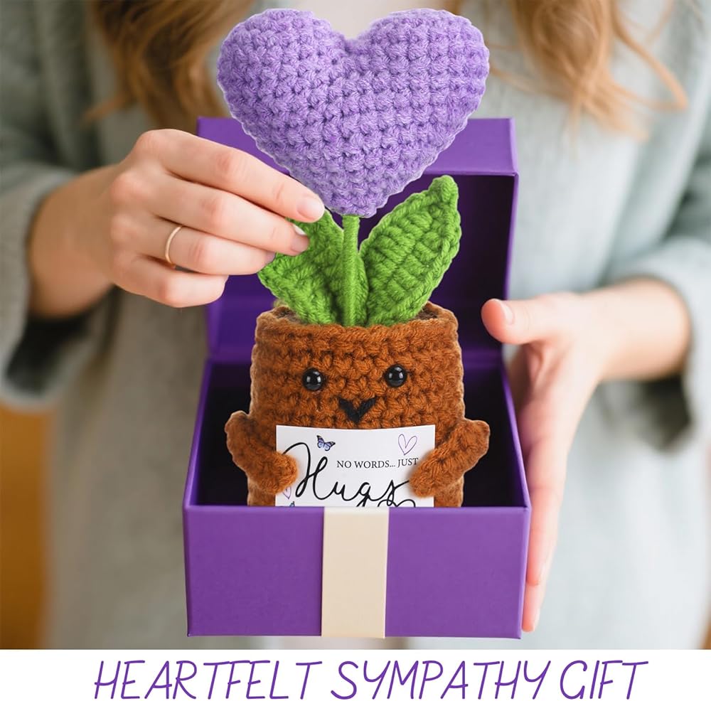 Capoda Valentines Crochet Gifts for Loss of Loved One Crochet Heart Plant with Comforting Card No Words Just Hugs Positive Support Gift for Kids Her Teen College Student Friend
