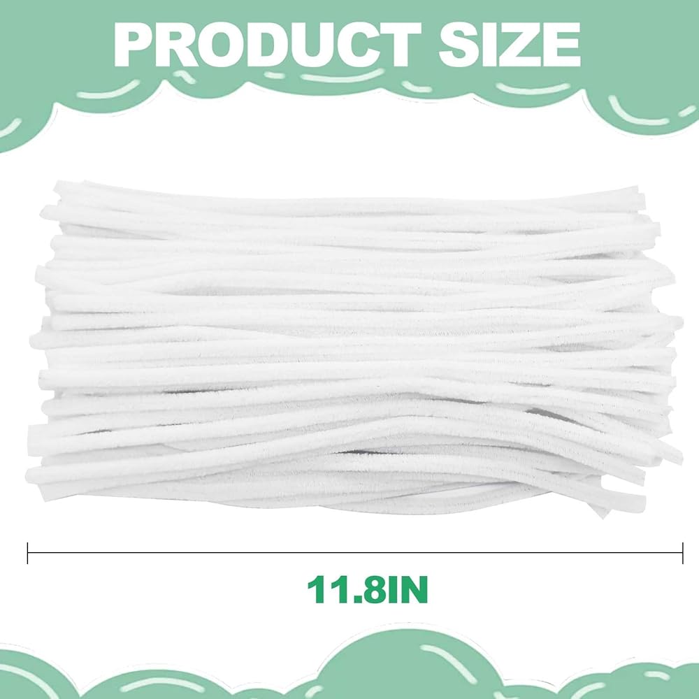 Safe and High-Quality Materials:Our chenille sticks are made from premium materials, ensuring safety and reliability. These white pipe cleaners are perfect for DIY craft courses, effectively boosting children's crafting skills and helping them develop creativity and practical abilities. Kids can easily twist these chenille sticks into various shapes, such as animals and fruits, to create toys, decorations, and birthday cards, making them an ideal gift for family members who love crafting.