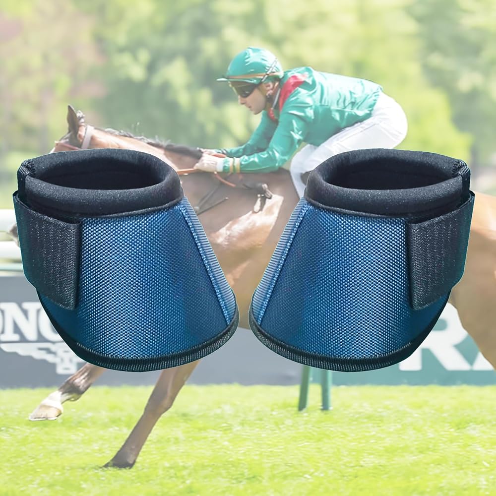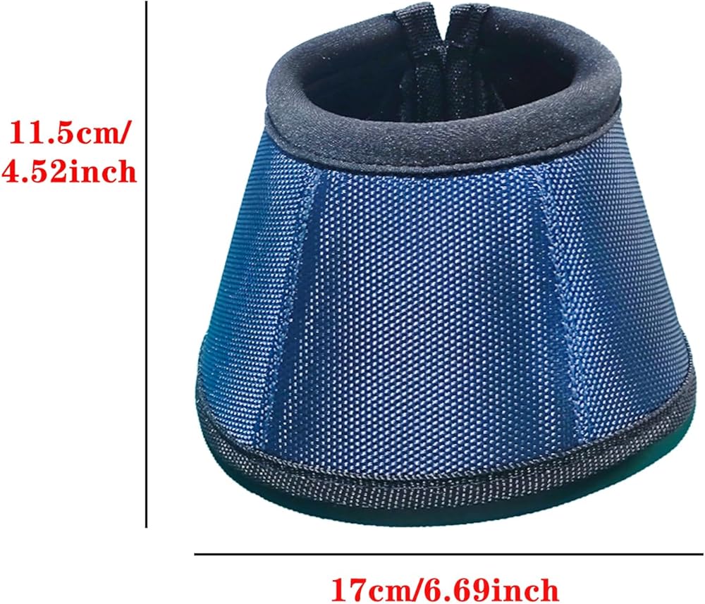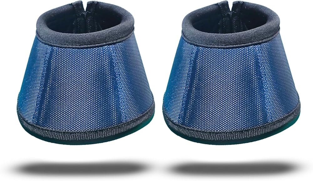 Professional Equestrian Bell Boots, Navy Blue Ballistic Nylon No-Turn Horse Hoof Protective Cover with Padded Rim, 1 Pair