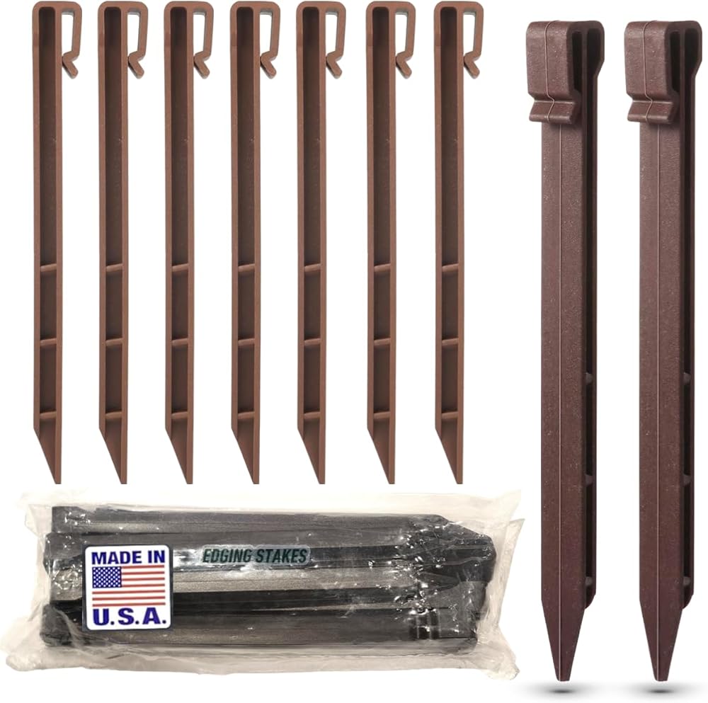 HOW MANY TO USE: Use at least one stake on each end of the edging and in the center. For tighter patterns or snake bend curves use more stakes to hold the shape (1 stake per 1-2 foot on tight radius bend)