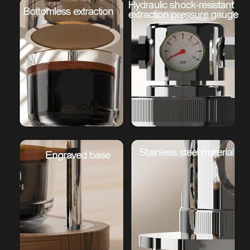 Manual Air Pressure Coffee Maker, Espresso Maker Manual Coffee Machine, Stainless Steel, 16Bar Fast Extraction, with Pressure Gauge, Compact for Camping Home Use 58mm