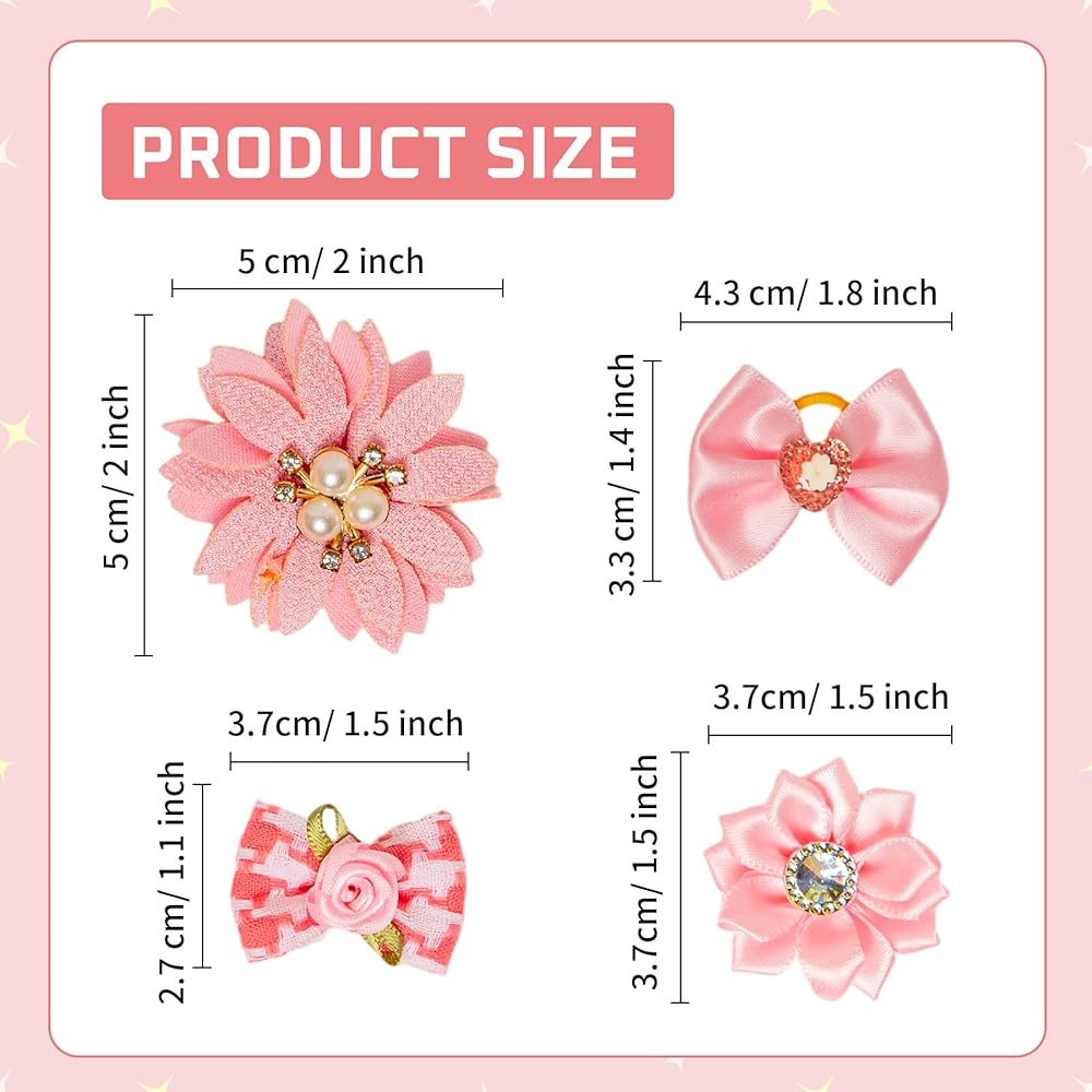 • IDEAL GIFT FOR DOGS: Every dog also needs careful care and dress up, our pet dog hair bows use different pink tones combined with rhinestones, pearls and other decorative embellishments, very cute and varied, perfectly in the dog's birthday and other days for your dog or friends and family members of small pets, so that each puppy is more delicate and different, but also give these gift for pet stores, pet owners, pet groomers!