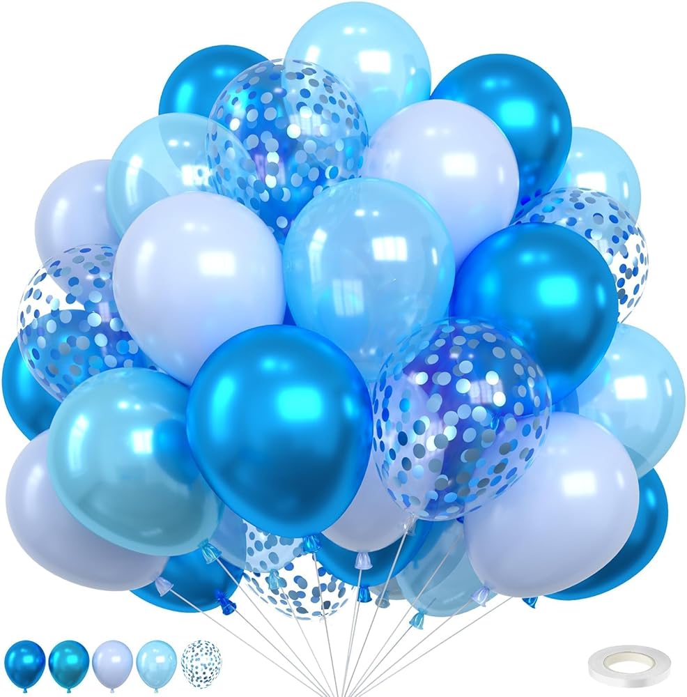 Blue Balloons,12 Inch Metallic Pearl Blue Macaron Blue and Confetti Balloons with Ribbon,for Birthday Wedding Baby Shower Graduation Engagement Party Decorations