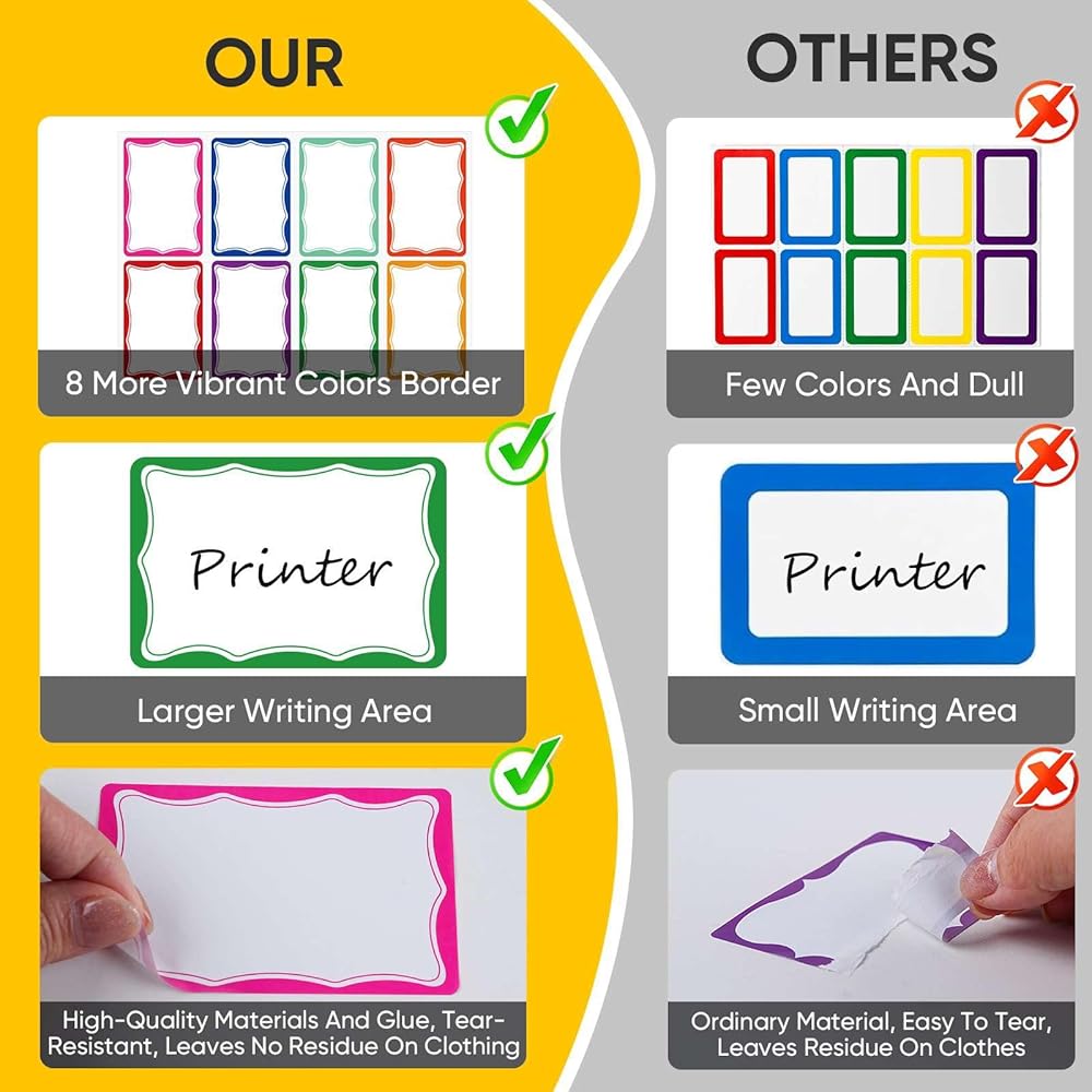 HIGH-QUALITY PRINTING: Our name tag stickers for kids are printed on high-quality paper with premium ink, which is non-toxic, odorless, and environmentally friendly. The name tags for classroom are fade-resistant, ensuring durability.