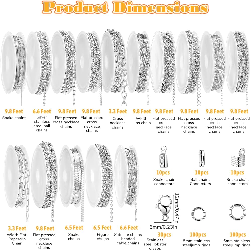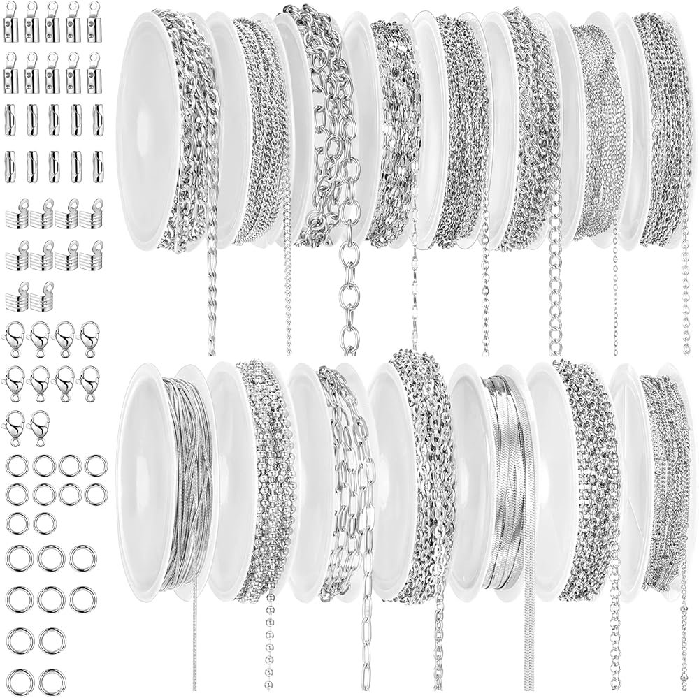 Complete 15-Roll Set with Versatile Applications: You'll receive 15 rolls of silver 304 stainless steel chains for jewelry making. This abundant set caters to DIY jewelry needs—ideal for crafting necklaces, bracelets, earrings, body chains, or extender chains, suitable for beginners, hobbyists, or small bulk production