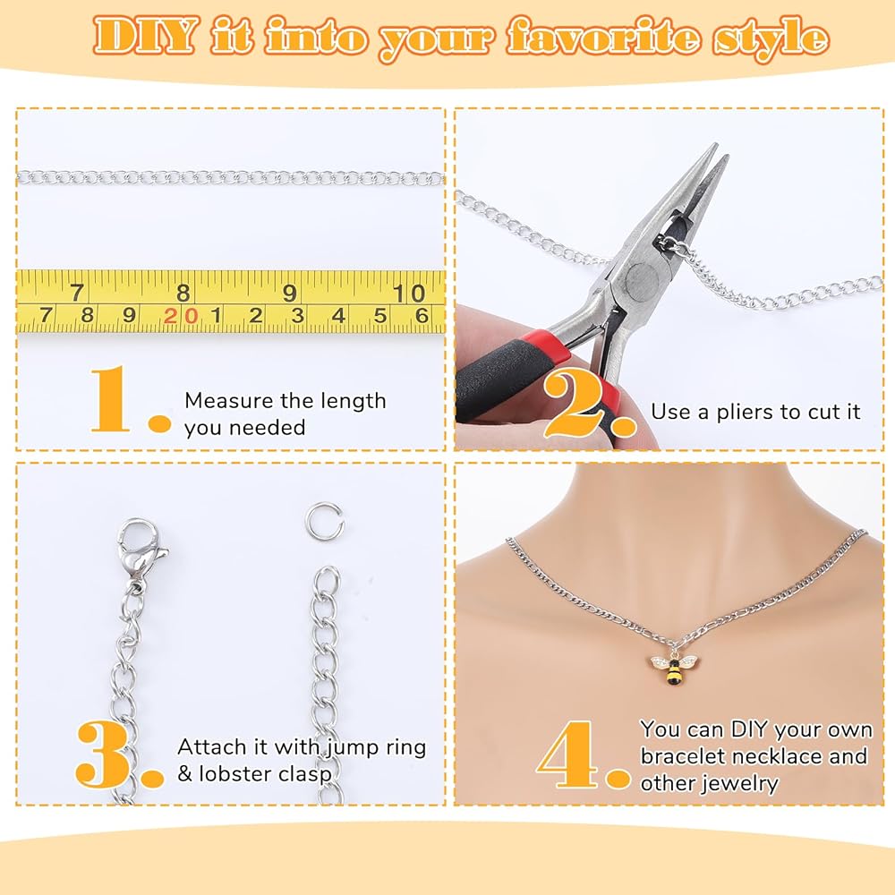 Premium 304 Stainless Steel Durability: Crafted from high-quality 304 stainless steel, the DIY chains are corrosion-resistant, rust-proof, and fade-free. They maintain a sleek silver finish over time, sturdy enough to withstand daily wear without bending or breaking, ensuring long-lasting quality for handmade jewelry
