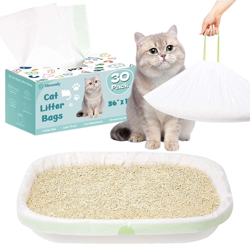 【Jumbo Size】Includes 30 jumbo cat litter box liners, each measuring 36" x 19" with 2 mil thickness. Fits most large litter boxes. Please check your litter box size before purchase.