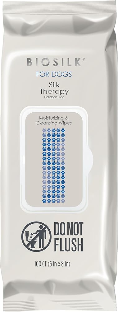 Keep your dog fresh, clean, and cuddle-ready between baths with BioSilk for Dogs Moisturizing & Cleansing Wipes. Inspired by the luxurious haircare line humans love, these gentle wipes are infused with silk proteins and enriching vitamins to help restore moisture and shine to your dog's coat. They're perfect for removing dirt, odors, and daily messes while leaving fur smooth and soft to the touch. Safe for daily use on dogs 8 weeks and older, these wipes are pH balanced for pets and will not wash away topical flea and tick treatments, making them the perfect choice for quick touch-ups or full-body refreshes anytime, anywhere. BioSilk dog grooming wipes are ideal for eliminating dirt, dander, and unpleasant odors, while simultaneously restoring moisture and imparting a silky sheen to your dog's coat. Additionally, they can be used as dog paw wipes for quick paw cleaning anytime. Whether your furry companion is romping through the park or lounging indoors, these versatile wipes ensure they remain fresh, clean, and ready for cuddles at all times. Directions for Use: Remove wipes from pouch and reseal to maintain freshness. Gently wipe pet until clean—safe for daily use. Dispose of used wipes in the trash (do not flush).