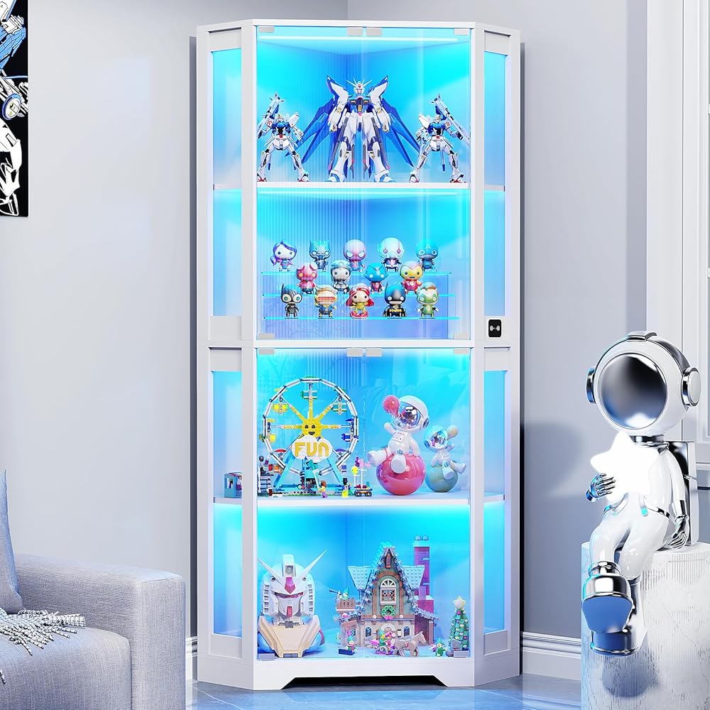 【Large Storage Capacity】This storage cabinet has fantastic 4-side glass pane doors, offers 4 tiers ample storage space for displaying collectibles, figures, antiques, wine, books and decor pieces. From living rooms and bedrooms to offices.