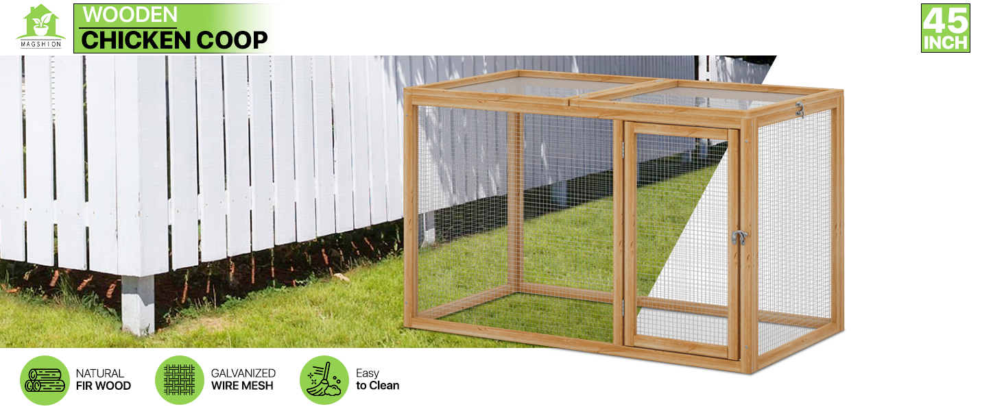 Magshion Outdoor Chicken Coop Run with Ventilated Wire Fence, Top Access, Wooden Bunny Cage Poultry Hutch for Small Animals up to 2 Chickens (Standard Size) or 4 Bantams, 45" Natural
