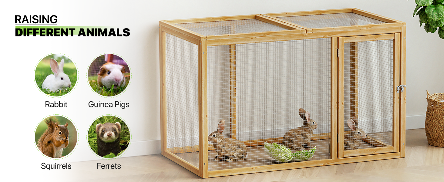 45" Chicken Hutch & Rabbit Cage Combo: This dual-use poultry enclosure acts as both a chicken coop extension and outdoor bunny house, giving small chicks and bunnies a spacious habitat (ideal for play, rest & exercise)