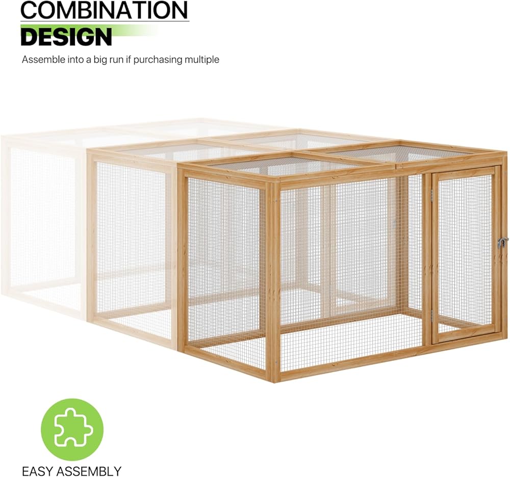 Premium Fir Wood & Heavy-Duty Mesh: Made of weatherproof fir wood with predator-proof wire mesh, this animal pen safely houses rabbits, ducks, and small pets while resisting predators.