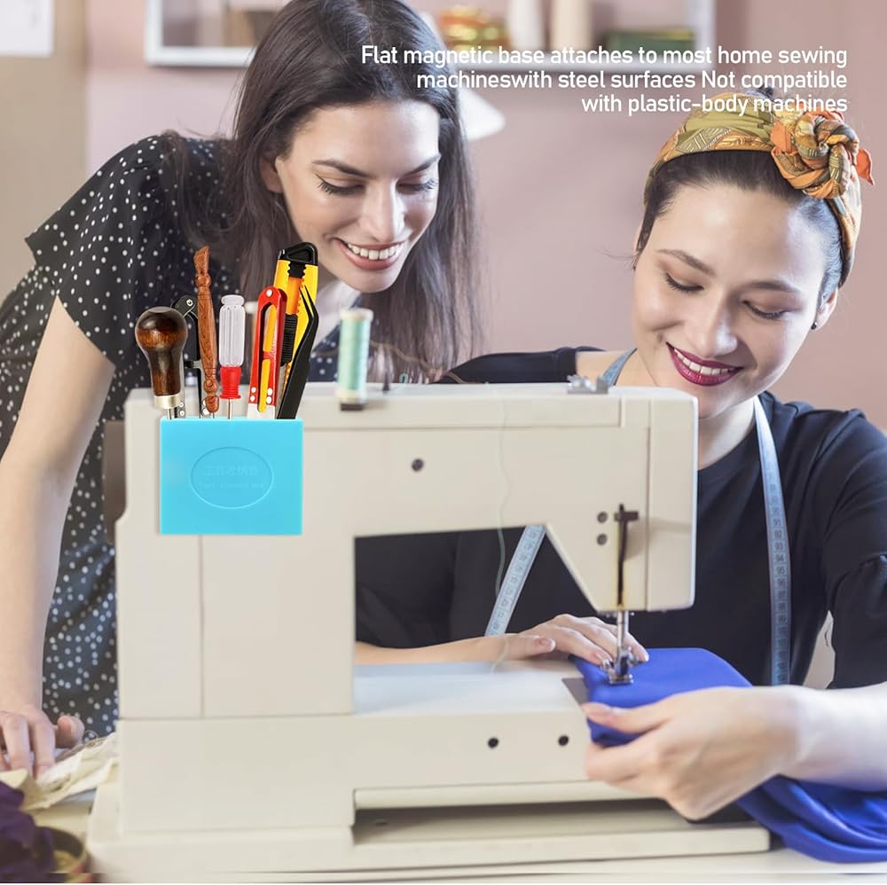 - Flat magnetic base attaches to most home sewing machines with steel surfaces Not compatible with plastic-body machines.