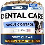 STRELLALAB Advanced Dog Dental Chews & Breath Freshener, Dog Teeth Cleaning, Bad Breath & Tartar and Plaque Off Remover for Dogs, Pet Oral Care, Pro Perio Support Lab Co Bright Formula - 90 Treats