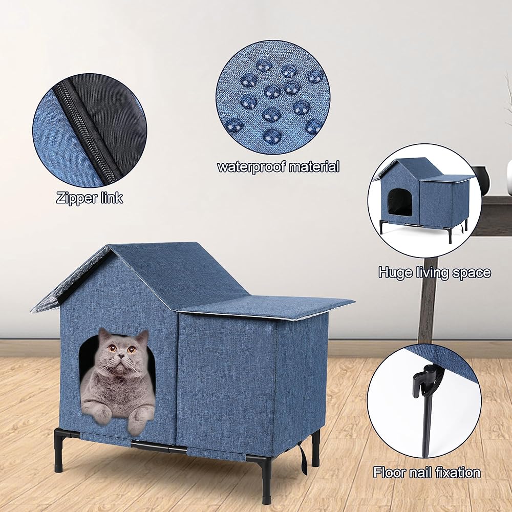 KEEP DRY WITH ELEVATED DESlGN: The included stand raises the cat house off the ground, preventing moisture andkeeping your cat comfortable.