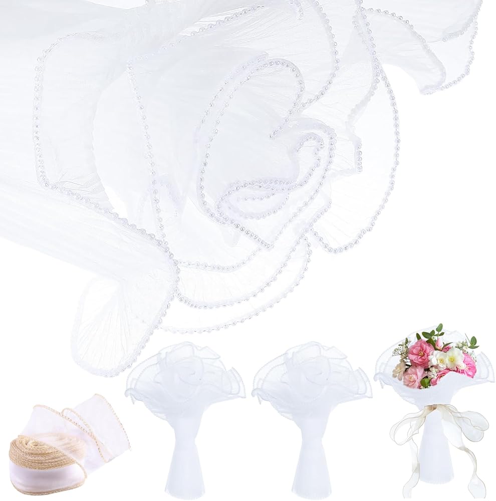 💐Value Pack: You will receive 3pcs 4 yards of white pearl mesh for bouquets and 1 pcs fishtail tulle with double gold edges, this set is enough to meet your needs for flower arrangement and packaging.
