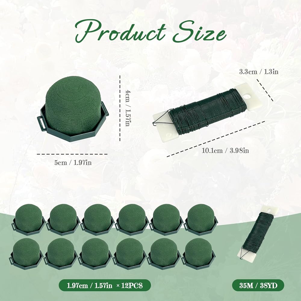 All-in-One Craft Kit:Receive 12 mini half-sphere floral foam holders (approx. 2" diameter) & 38 yards of green floral wire. Specially designed for wine bottle transformation, these compact holders easily adhere to various surfaces, providing the perfect foundation for creative DIY floral projects.