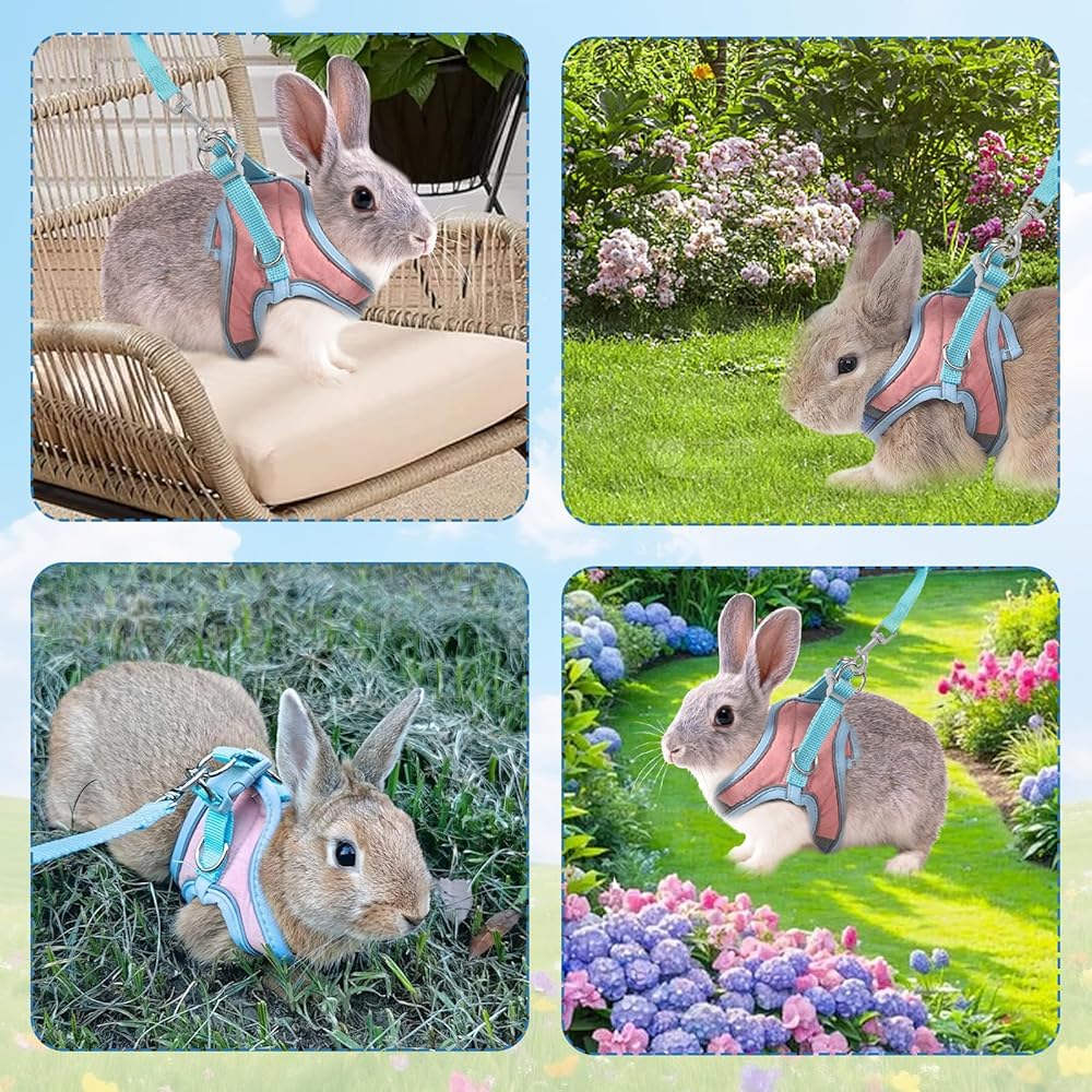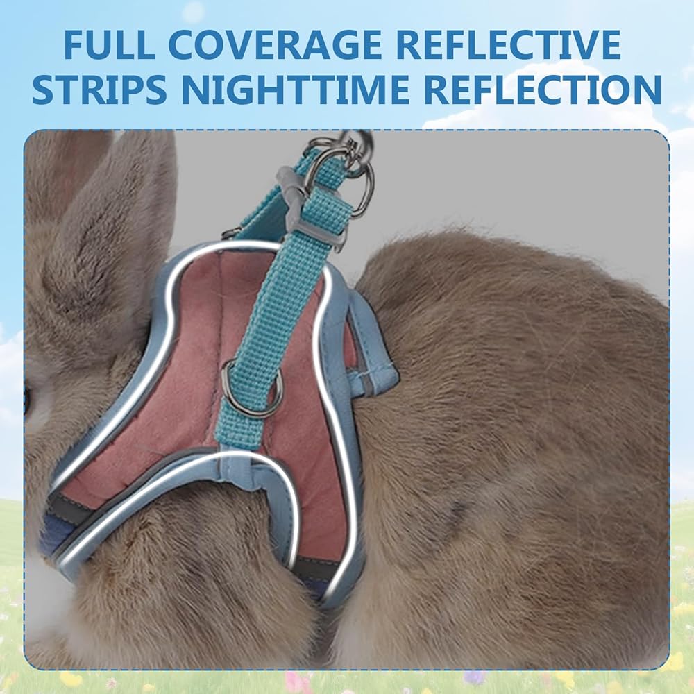 1. Bunny harness and leash is equipped with adjustable straps, which ensure a snug and secure fit, preventing your pet from slipping out during walks. The soft and breathable material is very gentle on the skin of rabbits and is perfect for daily use.