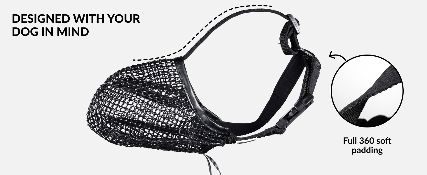 BREATHABLE & STURDY: Our dog muzzle is made from 100% breathable and durable soft mesh. This dog muzzle for large, medium and small dogs has reinforced stitching with soft padding that makes it last longer than regular muzzles and also ensures extreme comfort for your dog.