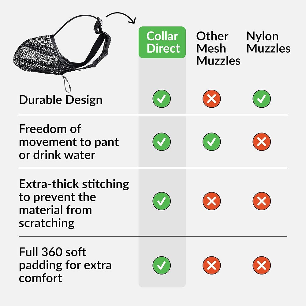 HUMANE DOG MUZZLE: Our dog muzzle is extremely soft and comfortable due to the mesh material used, as well as 360 padding around the straps and buckles. Most importantly, our mesh muzzle for dogs allows your dog to freely breathe, drink and pant, making sure that the soft muzzle doesn't restrict your dog's movement.