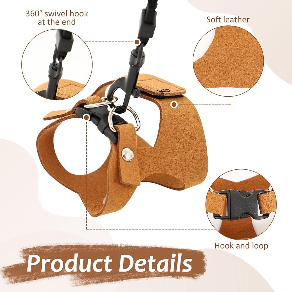 【Double Protection】Bearded dragon leash is made of soft leather material, which fits the curve of the pet's body and avoids skin friction and discomfort. The metal buckle fastening system not only prevents the bearded dragon from accidentally breaking free, but also avoids compression of the ribcage by fine-tuning the tightness. The widened chest and neck strap disperses the force, protects the pet safety in an all-round way when walking, and makes outdoor activities more secure.
