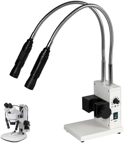 Microscope Illumination: This illumination enhances your microscope experience with advanced Fiber Optic Technology, providing bright and uniform lighting for precise observations. It features two 500 mm flexible gooseneck tubes for directed light.