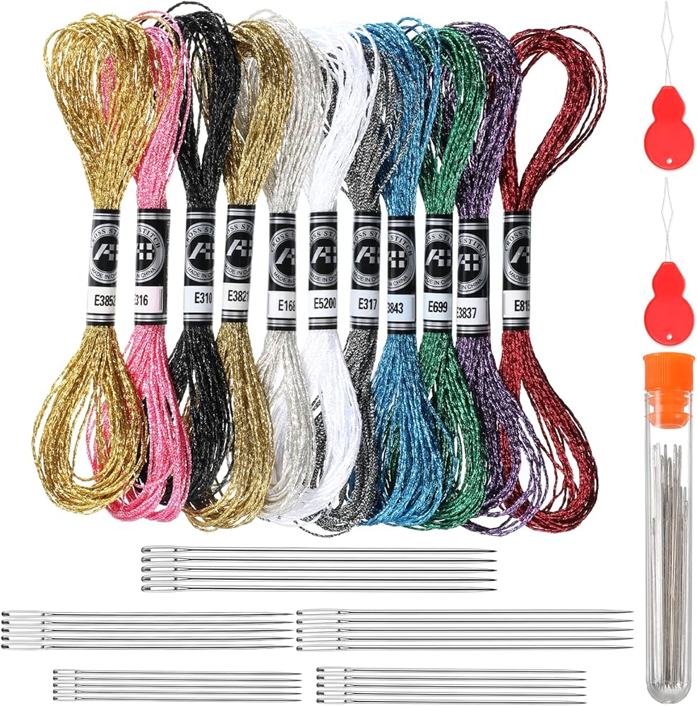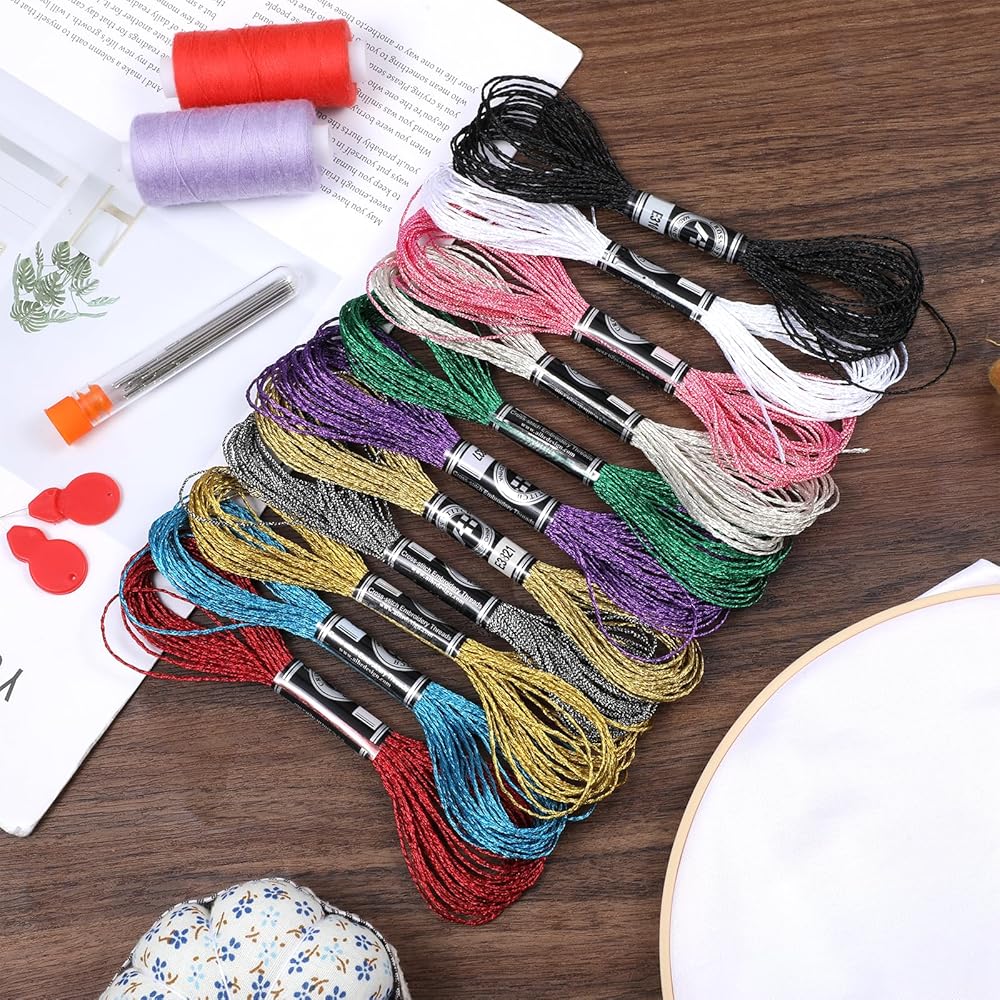 Premium Set: This set includes multicolor metallic embroidery thread, each in a distinct color. The 11pcs embroidery thread with needles and threader provides ample variety for diverse craft projects and color matching needs