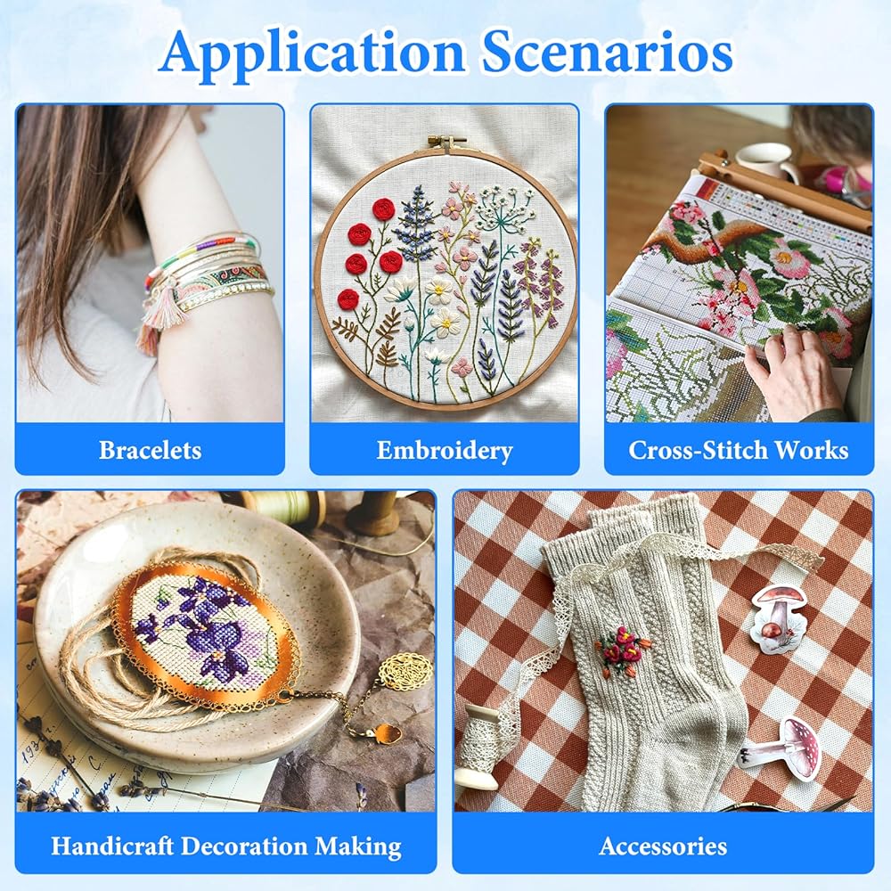 Versatile Craft Applications: Ideal for embroidery, cross-stitch, bracelet making, and home décor, this embroidery thread with needles enhances clothing, accessories, and handmade gifts with a professional, shiny finish
