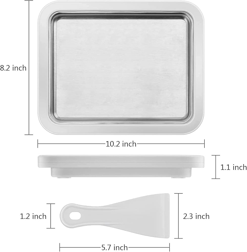 - Package includes: 1 Ice Cream Maker Pan, 2 Spatulas, and 1 Manual. We are committed to providing 100% customer satisfaction and are always available to assist you. Reach out to us for any product-related queries or issues. The large size can achieve your imagination at will: 10.2*8.2*1.1 inch