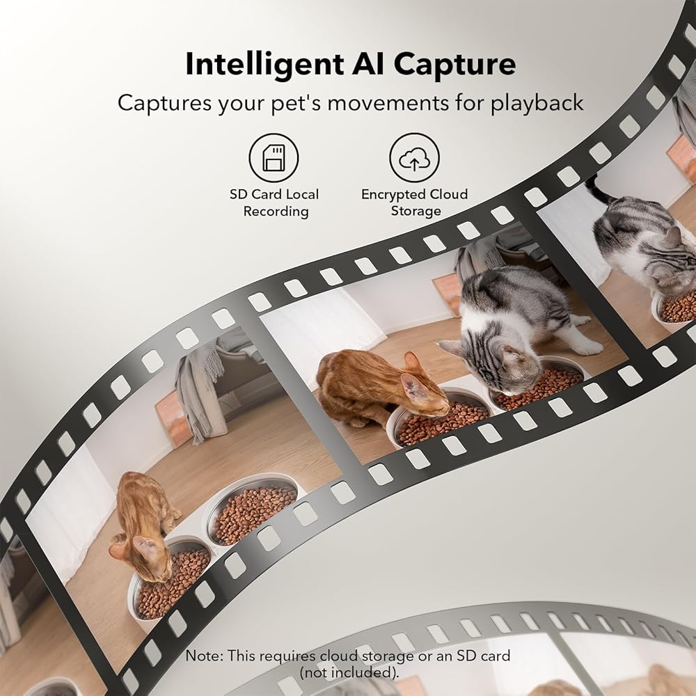 1080P HD Camera for Remote Monitoring: The PETLIBRO smart pet feeder with camera features a high resolution 1080P HD camera with 145° wide viewing angle, allowing you to see&hear your beloved pets and care their eating remotely while on the go. Videos can be saved on micro SD cards up to 256G or cloud storage for an extra pay online. The built-in camera supports IR night vision for clear monitoring in the dark, helping you learn your pet's eating habits through video playback in the APP