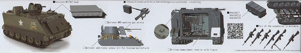 1/35 scale plastic model kit of the M113 ACAV, Vietnam War era. Glue & Paint not Included