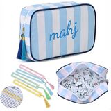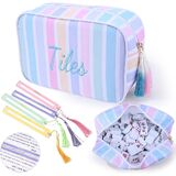 Empty Mahjong Tiles Bag with 4 Pcs Acrylic Mahjong Line Finder Cards Thickened American Mahjong Rack Bags for Game Party Travel Gatherings Accessories 9.4 x 6.1 x 3.1 in (Blue)
