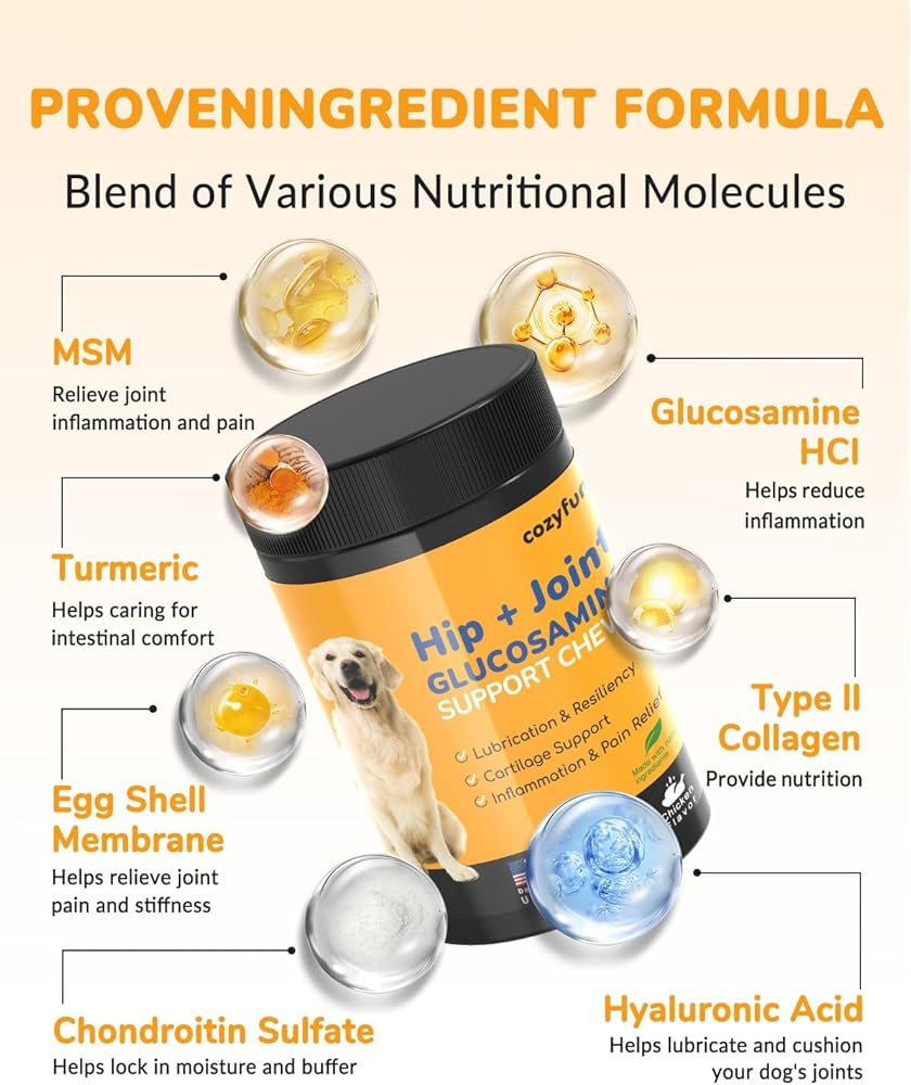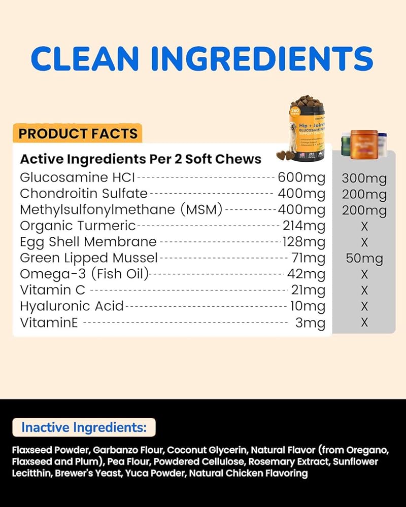 ✔【Long-Lasting Joint Protection for Your Dog】: Each extra-large 23oz bottle (2.5x more than standard brands) contains 260 chewable tablets - providing 70 days of protection for medium/large breeds or 180 days for small breeds. Enhanced with high-potency fish oil, our triple-action formula provides superior anti-inflammatory support and natural joint lubrication that works synergistically with Glucosamine and Chondroitin to maintain cartilage health, increase synovial fluid, and help your dog move with effortless freedom.