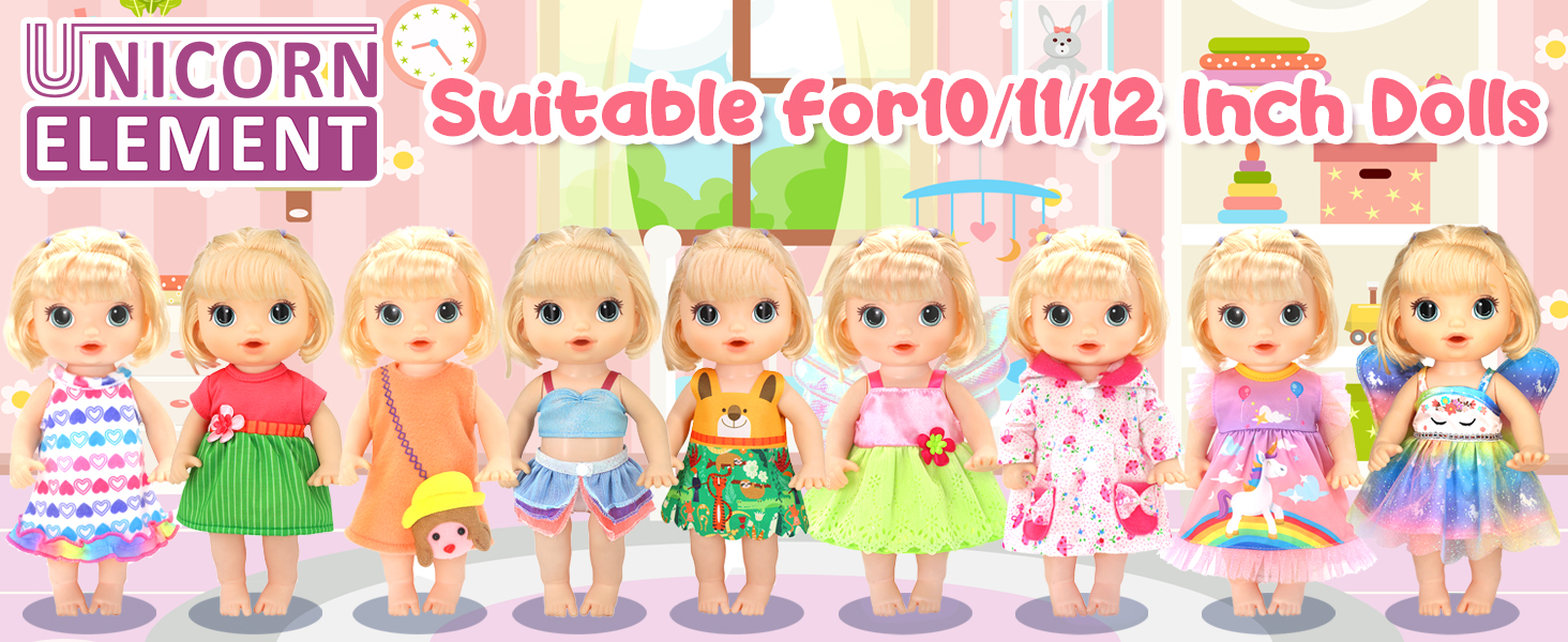 Size Fit: The 12 inch doll clothes are designed for 10-12 inch dolls, shoulder width and waist circumference are cut according to the doll's body shape, not tight to wear,clothes with velcro design for easy to put on and take off