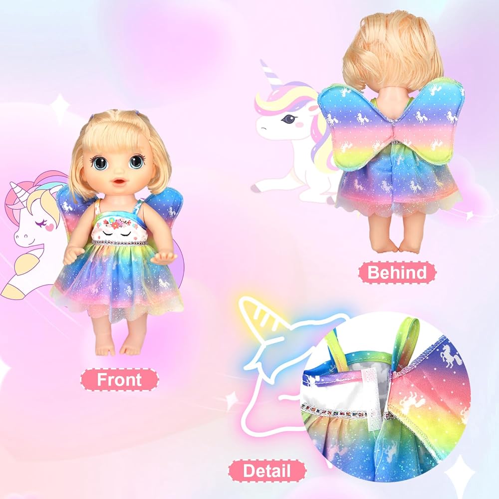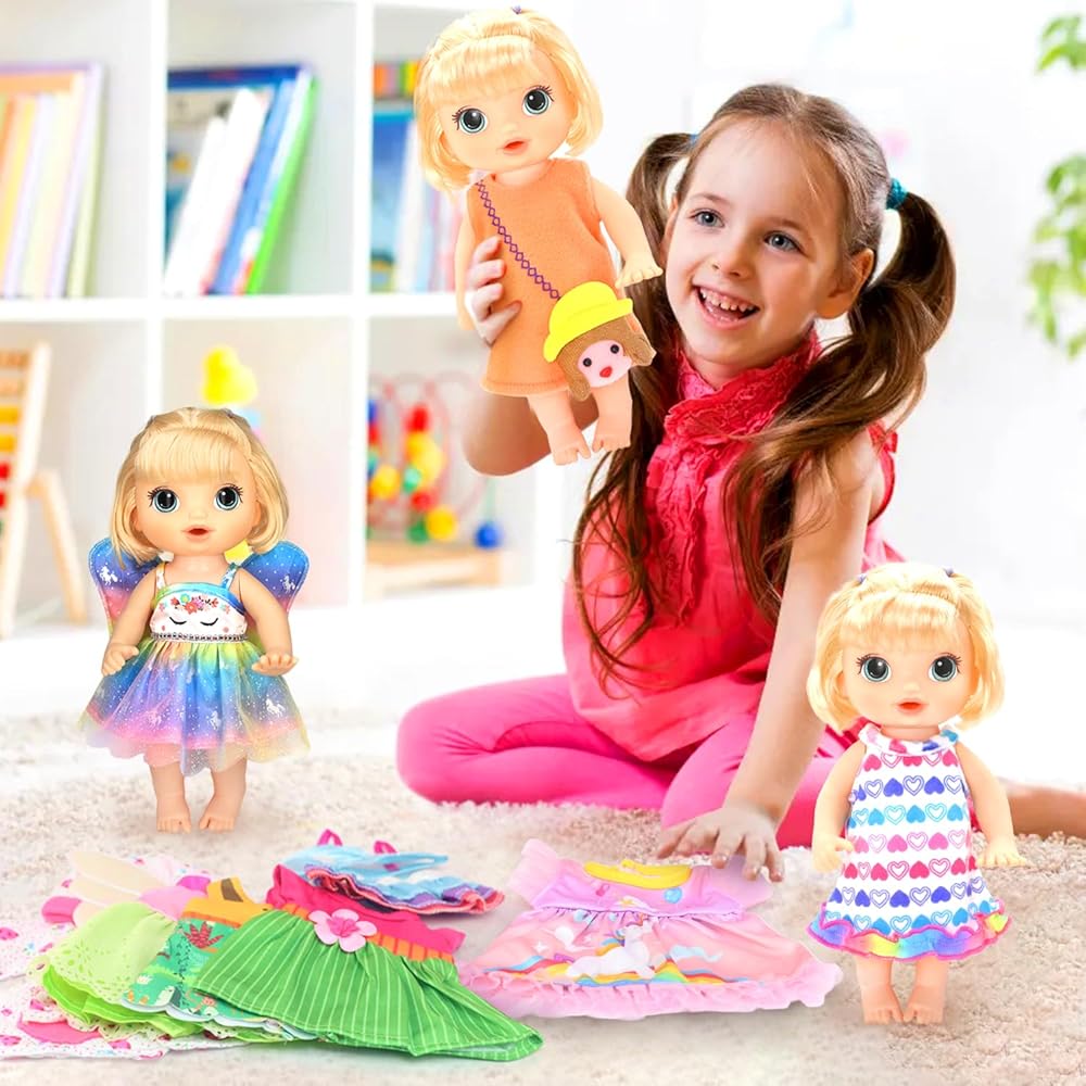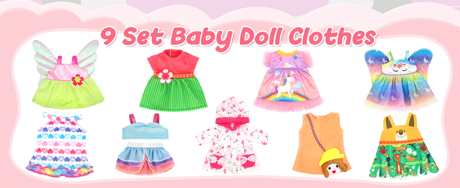 Unique Design:These 9 cute doll costumes feature interesting patterns and rich colors, giving kids the space to freely match their clothing, stimulate their imagination, and cultivate their aesthetics.