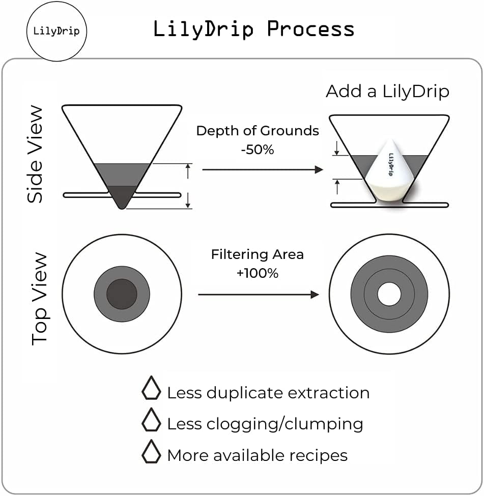 SAME BEAN, DIFFERENT FLAVORS: LilyDrip is a drip coffee maker pour over accessory that lets you experiment with brew time & grind setting to create multiple types of flavor using the same bean. Helps extract maximum flavor from your beans without interference