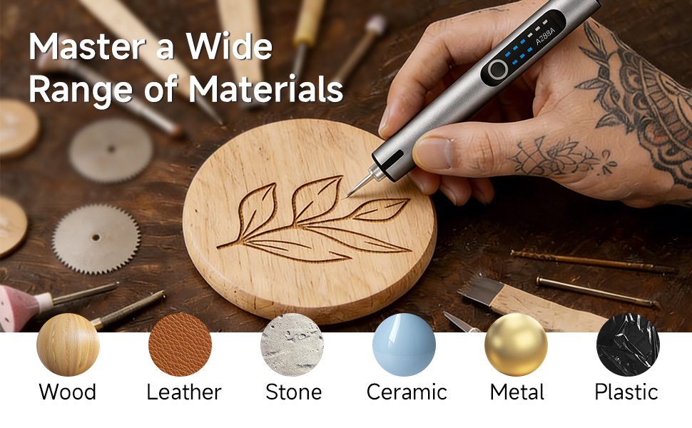 【3-Speed Control for Multiple Materials】 Switch between 3 precise speed settings to handle different tasks effortlessly. This versatile engraving pen for metal, wood, glass and plastic delivers the perfect balance of power and control for engraving, etching, and polishing.