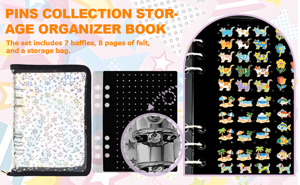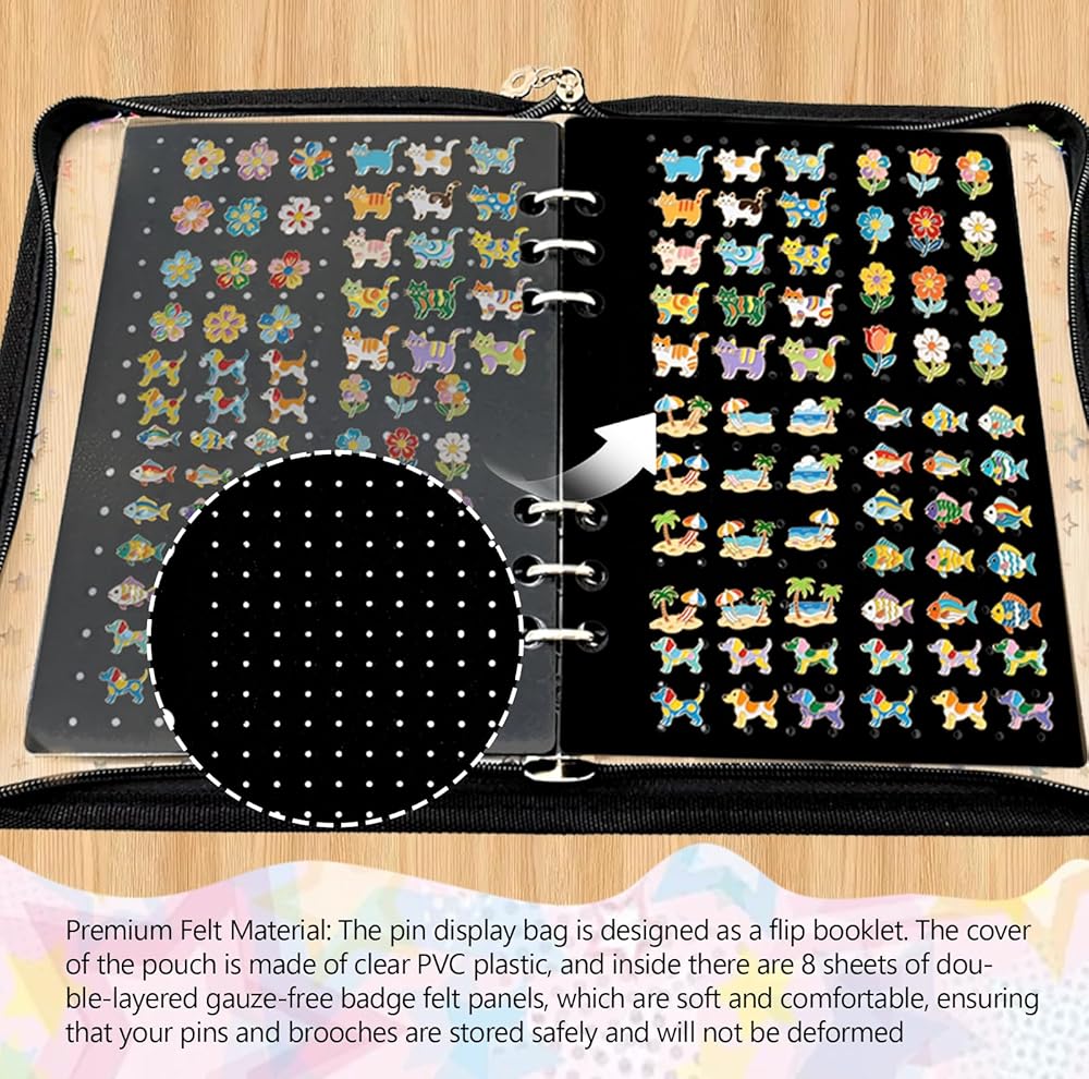This Pin Display Book is designed for pin collectors, featuring an 8-page pin display organizer board in A5 size. It allows you to neatly store and showcase your pin collection in one place, making it easy to view and appreciate your treasures.