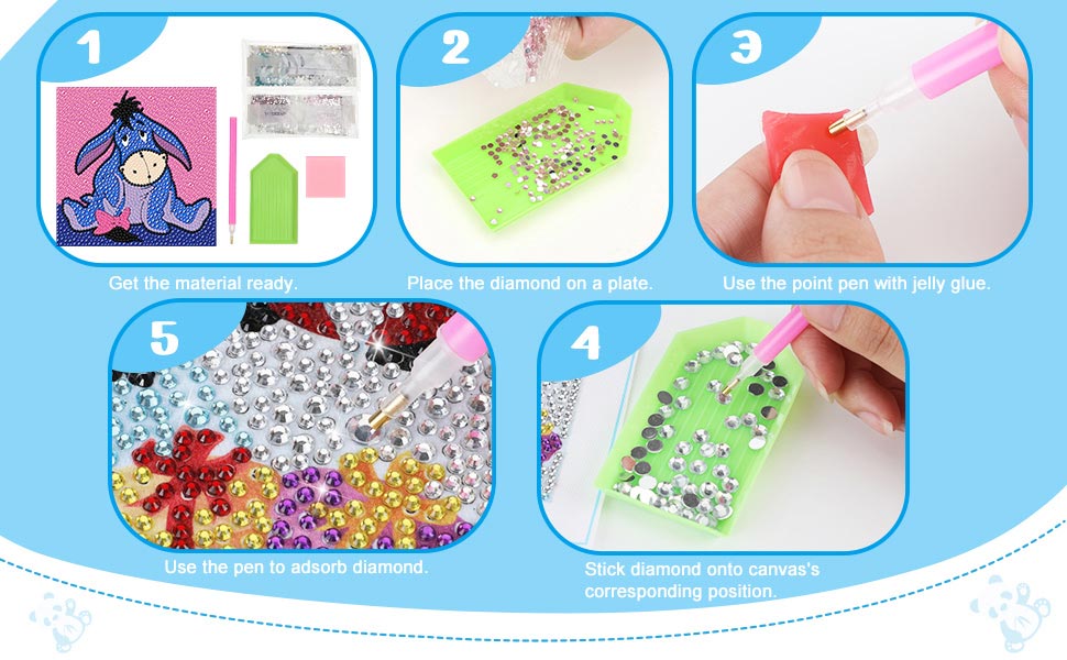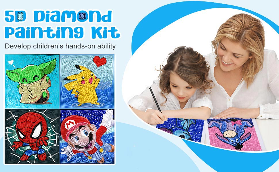 High-Quality Acrylic diamond Gem-- The diamond painting kits for kids are made of import multi-face crystal organic glass diamonds, have various sizes and rich vibrant colors, which like the sun catcher makes the painting more sparkling and bright, it is a good diamond art for kids
