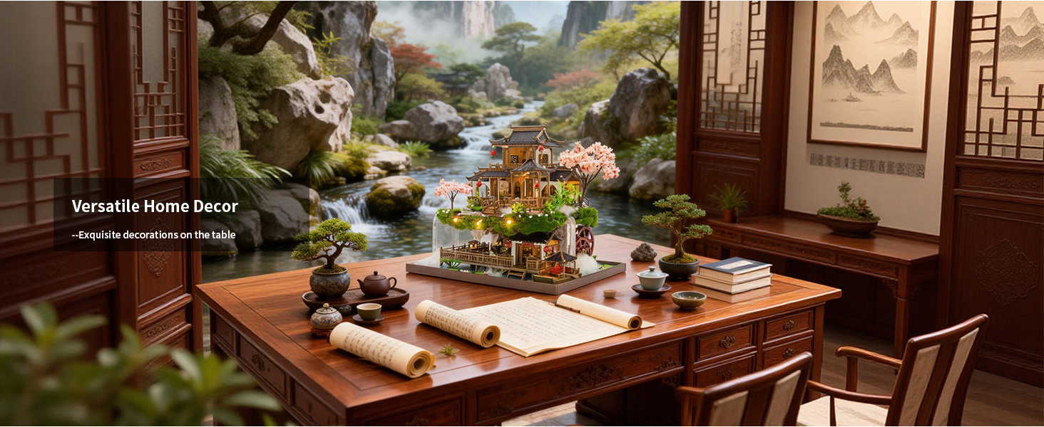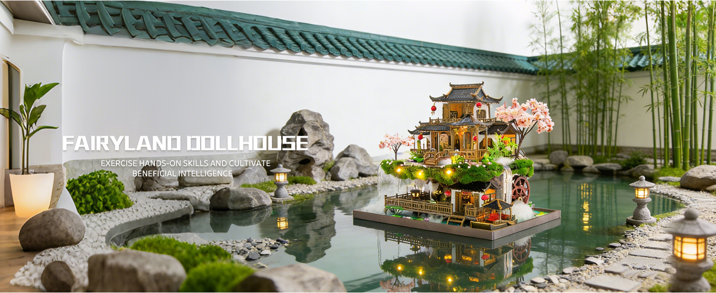 ***Fairyland DIY Miniature House Kit,: Meticulously crafted from premium wood, this DIY miniature house kit brings fairyland charm to life with exquisite details and quality. From the exquisite architecture to the simulated waterfall, every piece and furnitures build this booknook kit a miniature Fairyland!