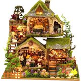 ***Stunning Miniature Scene for Home Decor: The surprises don't stop with assembly! The DIY miniature kit has a built-in soft, touch-sensitive LED light. Gently open it, and warm light instantly filters through windows and door cracks, creating a warm and fairyland atmosphere that perfectly complements books. Place the completed tiny house on your desk, bedside table, or bookshelf to create an artistic miniature scene. It's the perfect home decoration for adding a touch of fairytale charm to your office, living room, or bedroom.