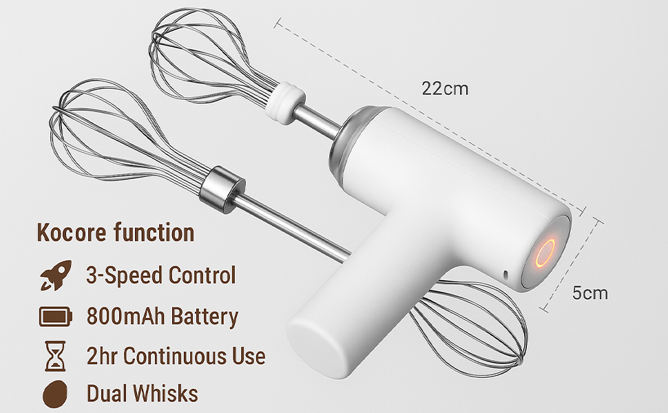 2PCS MIXING WHISK: There are 2pcs interchangeable mixing whisk for flexible application and switching according to food needs.